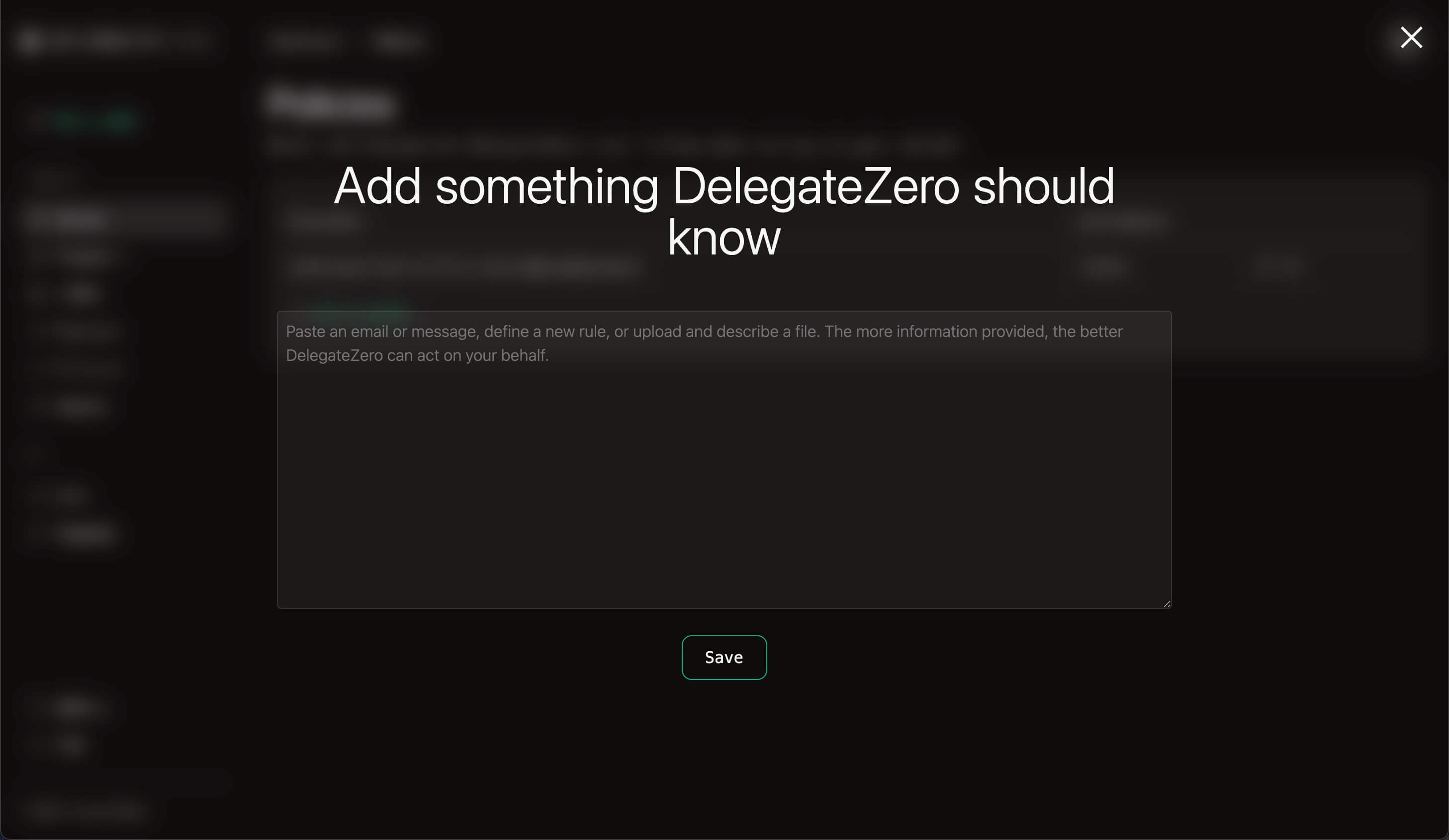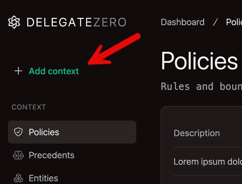 Policies define non-negotiable rules and boundaries that DelegateZero must follow. They always take precedence over confidence, precedents, and playbooks.